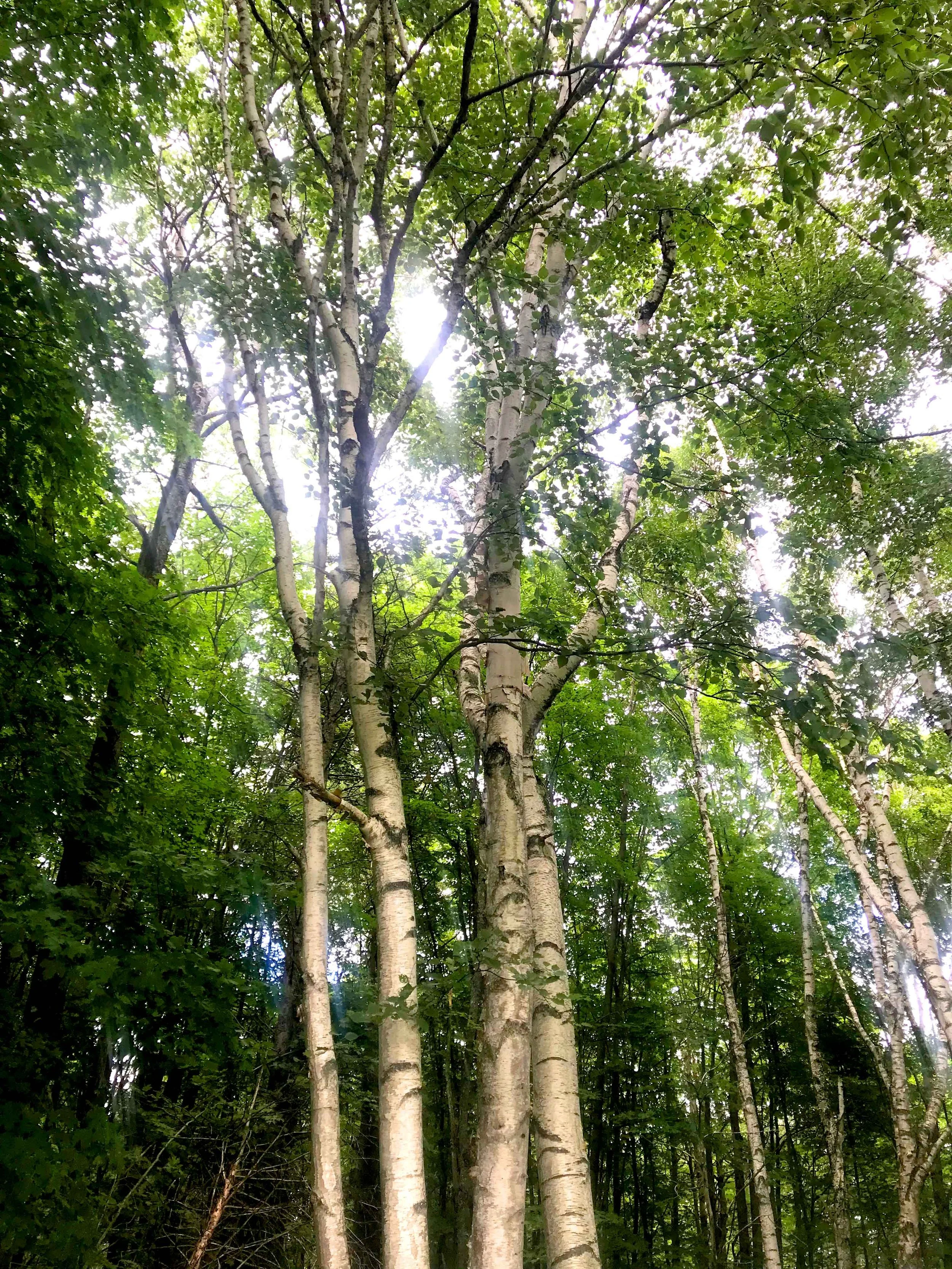 Birch Entanglement, acrylic on canvas, polyfill, steel, 84 x 33 x 8 inches, 2022